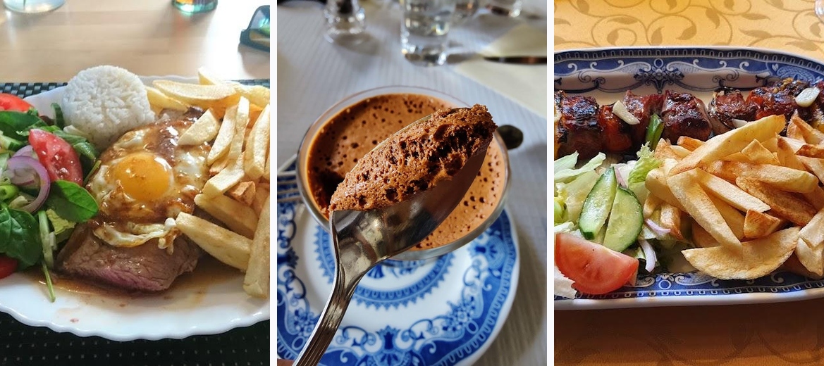 Don’t miss the Portuguese Custard Tart and Chocolate Mousse—they are local favorites and a perfect end to your meal.